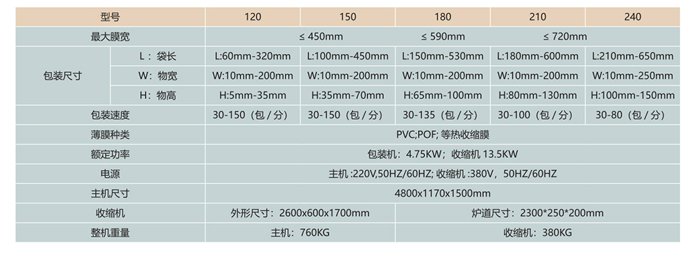 本机操作简单,质量可靠,性能稳定。变频调数,无级变速。整机的控制集中由 PLC完成,减少了故障点。热收缩炉高效双温区,无极调速自动控温。高效热风循环,保证收缩质量。